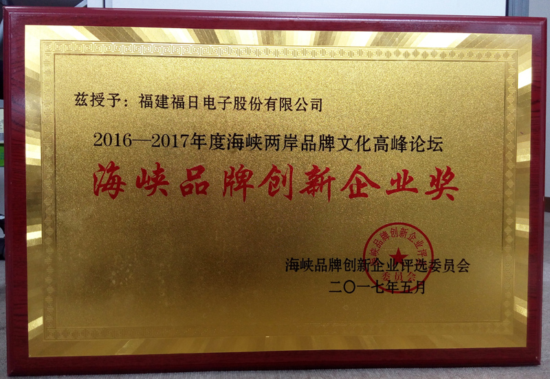 2017年5月18日,福日电子应邀参加第七届海峡两岸品牌文化高峰论坛。论坛上,福日电子被海峡品牌创新企业评选委员会授予2016-2017年度海峡品牌创新企业奖。