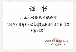 又讯 2020年12月4日,广东省电子信息行业协会第五届会员代表大会暨新一代电子信息产业发展论坛在广州召开。本次活动以“聚集产业集群,共谋创新发展”为主题,会上,广东省电子信息行业协会发布了2020年广东省电子信息制造业综合实力100强企业榜单,福日电子二级控股子公司广东以诺通讯有限公司位列该榜单第50名。